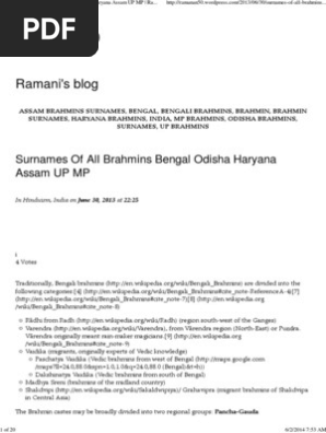Surnames Of All Brahmins Bengal Odisha Haryana Assam Up Mp Ramani S Blog Hindu Literature Religion And Belief - ► this movement gained traction not just with tamilians in india but also those across.