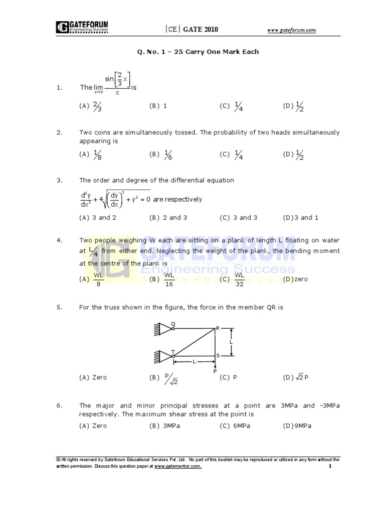 Civil Engineering Entrance Exam Questions - Previous year question papers of upsc engineering service exam of civil. Civil Engineering Entrance Exam Questions / Joint entrance exam main (jee main).