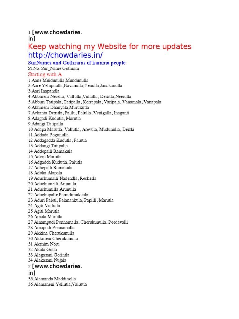 Kamma Surnames - Kamma sur names (chowdhury) and gotras telugu ramesh 851.09kb.
