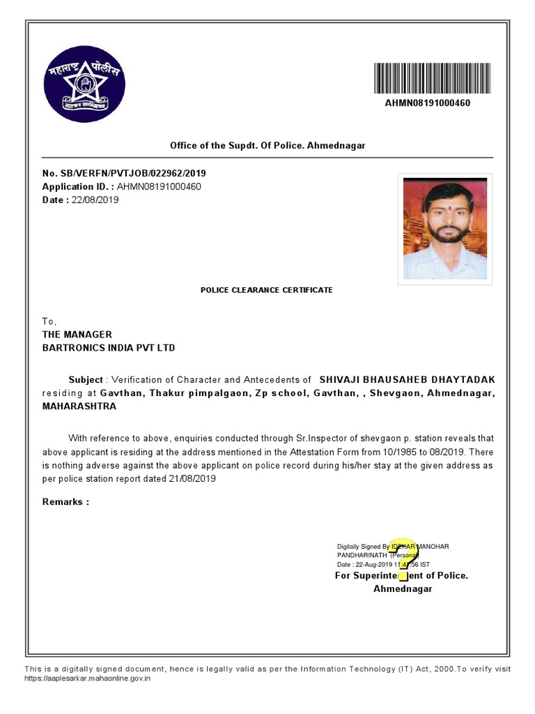 Police Clearance Maharashtra For Android Apk Download - Police certificate is also known as good citizen certificate (in hk), good conduct certificate, police clearance certificate, or judicial record extracts.