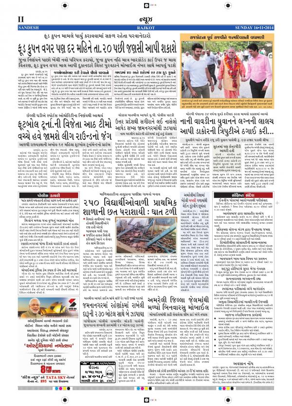 Rajkot - Read today sandesh gujarati epaper published from ahmedabad, baroda, surat, rajkot and bhavnagar.