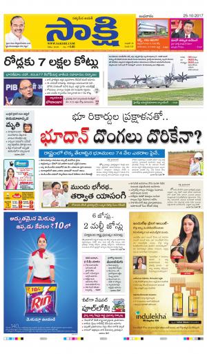 Sakshi Telugu Daily Andhra Pradesh Tue 23 Oct 18 - Sakshi is a leading and popular telugu language daily newspaper that is published from hyderabad, in the state of telangana, in south india.